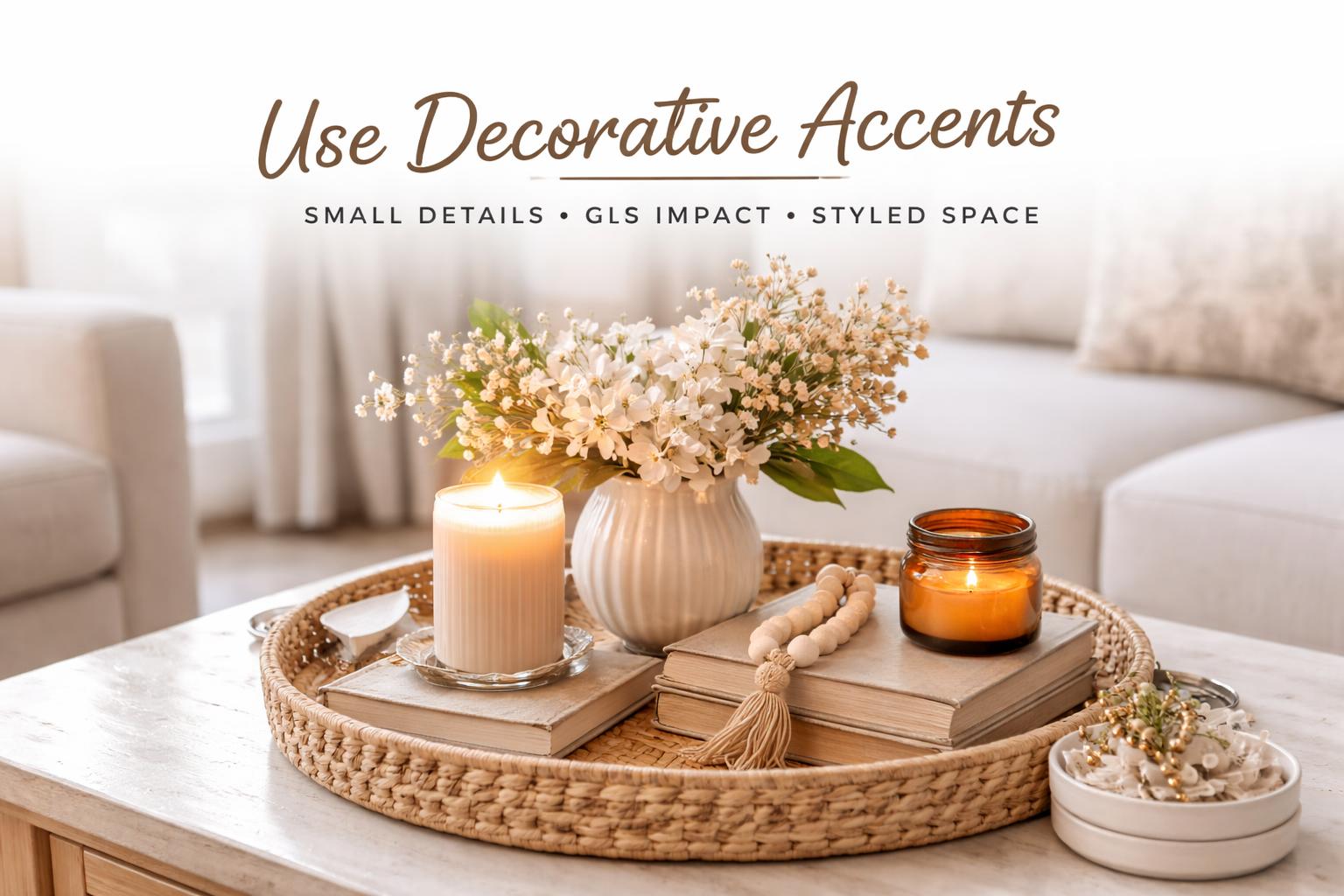 Small decorative items can have a big impact. They make your home feel styled and intentional. Use accents like: