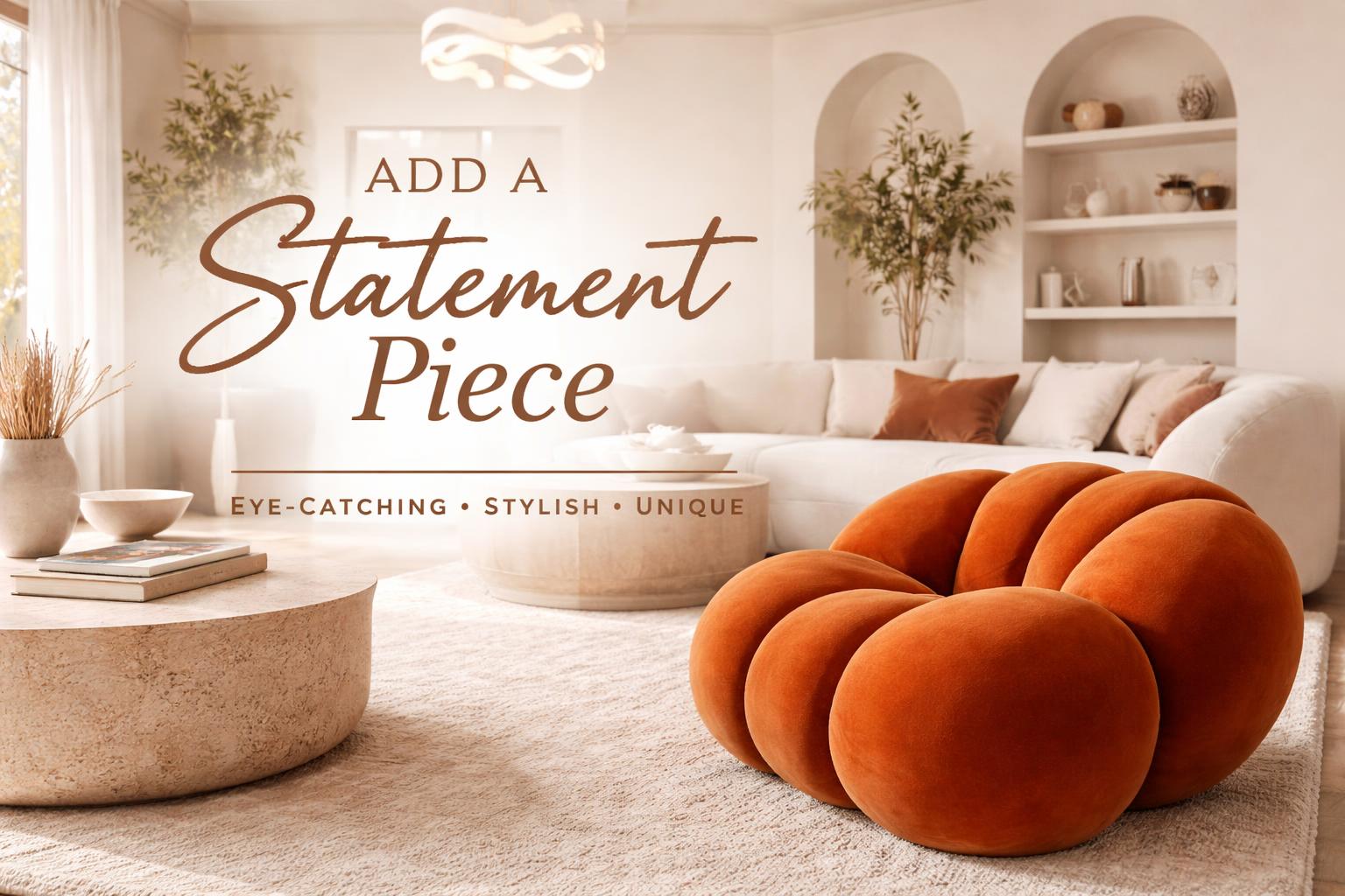 A statement piece, like a bold chair or artwork, adds character and draws attention.